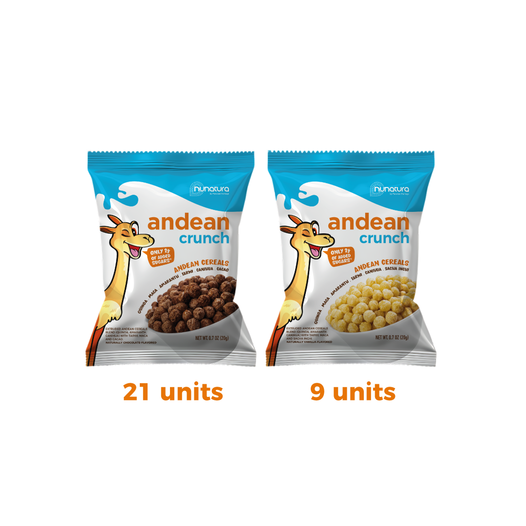 30 x Andean Crunch – 21 bags Chocolate & 9 bags Vainilla